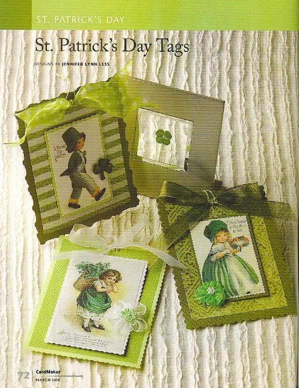 **** I had 3 St.Patrick's Day and also 3 Easter tags appear in a Spring issue of CardMaker magazine. Following are pictures of each of the 3 tags and then the magazine pages featuring those designs. I was very excited to have 6 projects in one issue! Thanks, CardMaker!