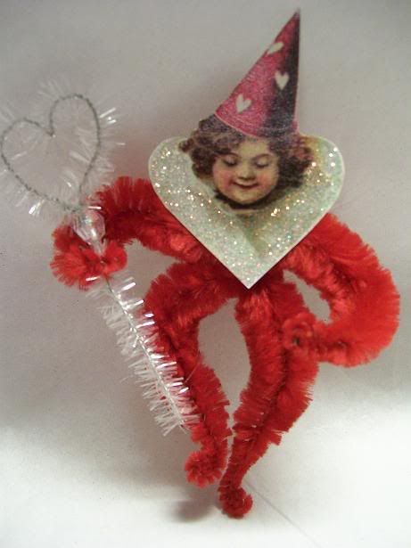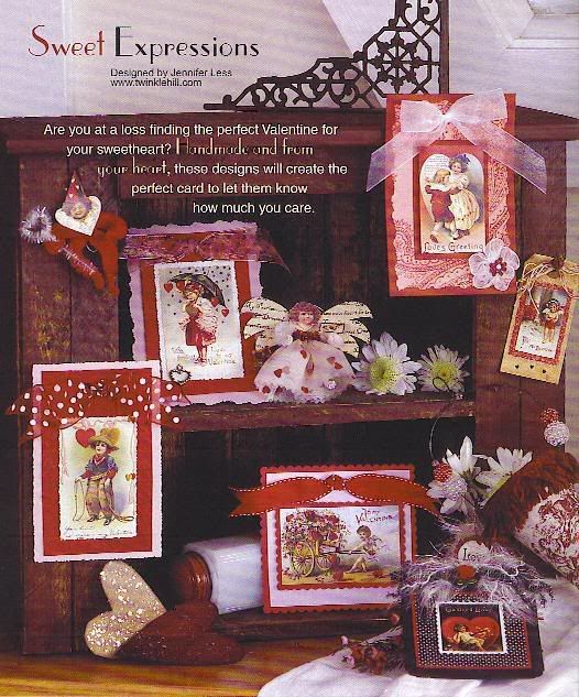 **** In the February 2008 issue of Create & Decorate, nine of my Valentine designs were featured as a vignette. I was very honored and pleased. How nice to have 9 projects featured! Thanks, Create & Decorate! Some paper art tags, a fabric covered cone and Victorian vintage scrap face ornaments were all included.
